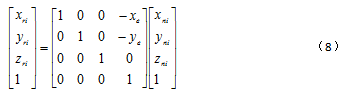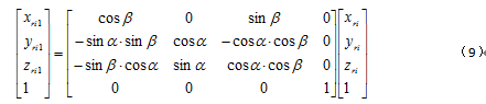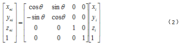 ,利用三維坐標變換原理,將此空間直線做兩次旋轉即可保證與回轉軸線重合,可得當前被測點實際坐標公式:
