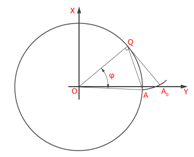 ,漸開線起點和切點坐標確定后,利用余弦定理求得起測點