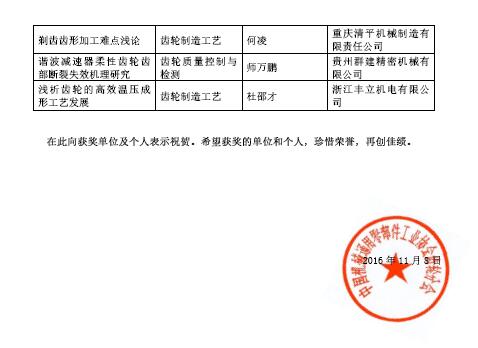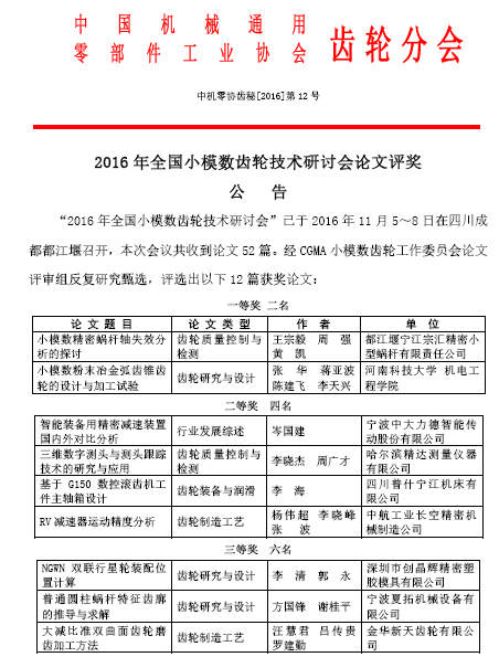 2016年11月5-8日,“2016年全國小模數齒輪技術研討會”成功在四川都江堰召開,精達公司在行業會議中發表了具有技術創新性的三篇論文:《微小模數齒輪精度測量新方法在齒輪測量中心上的應用》、 《三維數字測頭與測頭跟蹤技術的研究與應用》、《基于精密測量技術組建測量線的蝸桿M值自動分選機設計》;其中,《三維數字測頭與測頭跟蹤技術的研究與應用》榮獲二等獎。